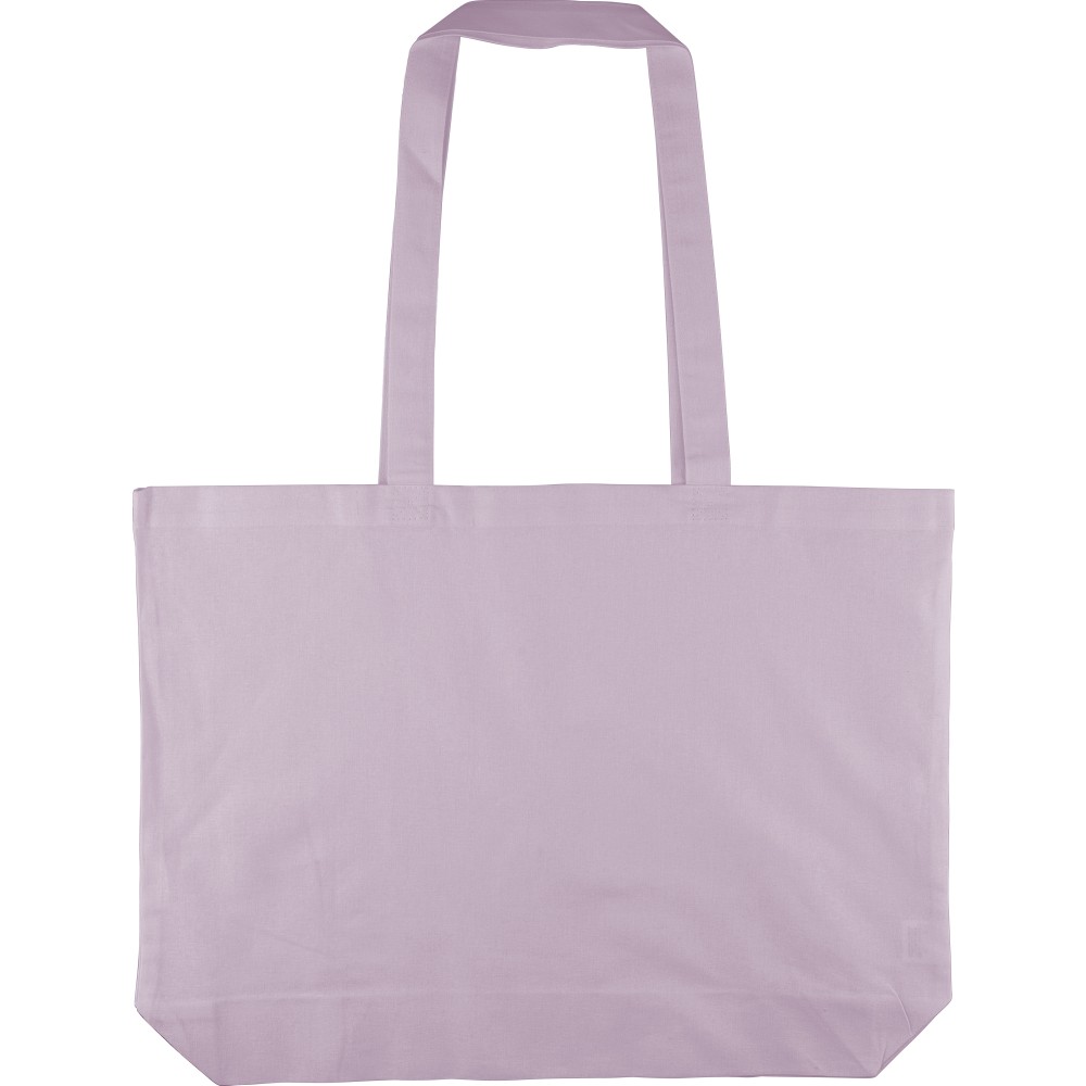Oeko-Tex minősítésű, 140 g/m2 pamutból készült bevásárlótáska 10 cm-es talppal és 70 cm hosszúságú, 2,5 cm szélességű hosszú fülekkel. Pasztell színekben elérhető: PMS 9562U (zöld), 162U (narancs), 317U (kék) és 522U (lila). Oeko-Tex címkével ellátva.