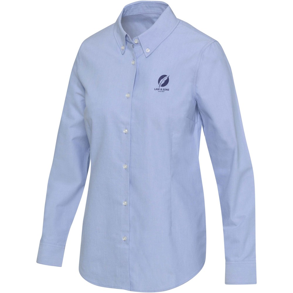 A Sphene hosszúujjú női oxford blúz időtálló dizájnt kínál, kifinomult nőiességgel. BCI-tanúsítvánnyal rendelkező pamutból készült, sima, kiváló minőségű tapintást biztosít, miközben támogatja a fenntarthatóbb pamuttermelést. A klasszikus oxford szövés finom textúrát és szerkezetet ad, kifinomult megjelenést teremtve, amely professzionális és alkalmi helyzetekben egyaránt jól működik. Normál fazonú, elöl és hátul formázó redőkkel, előnyös, kontúrozott sziluettet kínál. A gombos gallér teszi teljessé a dizájnt, így a Sphene egy sokoldalú alapdarab a ruhatárban. 100% BCI pamut oxford. Emblémázás: Hímzés
