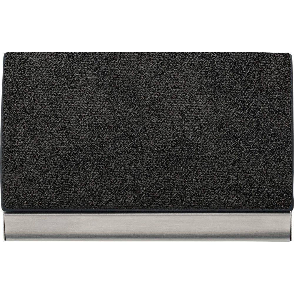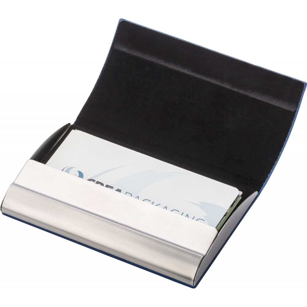Ívelt, fekvő formátumú névjegy- és hitelkártya tartó PU bevonattal, mágneses záródással, belül bársony béléssel. Emblémázás: Gravírozás, Tamponnyomás