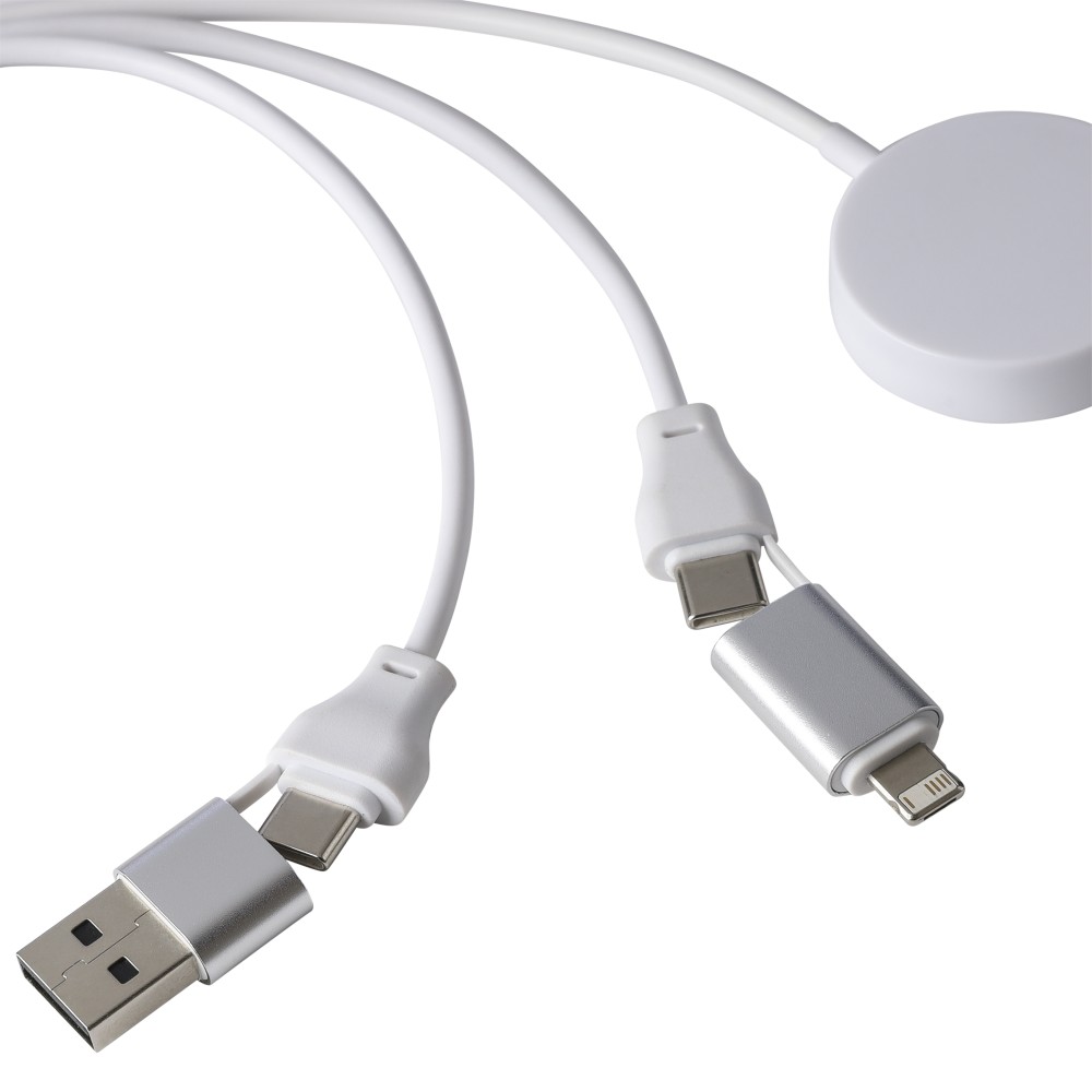 TPE anyagú töltőkábel szett bambusz csatlakozóházzal és fém kulcskarikával, kompakt kulcstartó kialakításban. Tartalmaz PD 65 W gyors töltésre alkalmas kábeleket (2 az 1-ben Type-C/Lightning és USB-A/USB-C), valamint univerzális okosóra töltőt. Barna kartondobozba csomagolva.