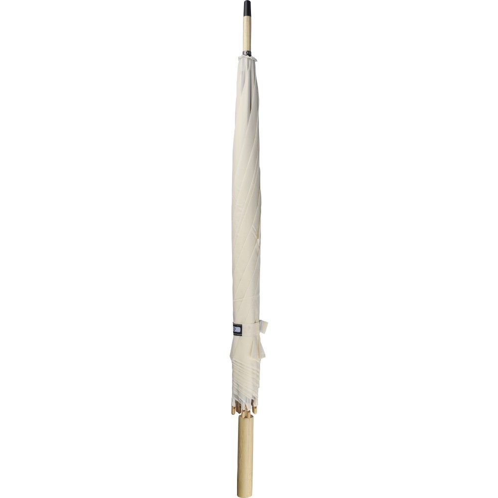 RPET 190T anyagból készült automata golfesernyő nyolc panellel és bambusz fogantyúval. Bambusz és acél szárra épülő fém vázzal rendelkezik, tépőzáras zárópánttal és rPET címkével ellátva. Emblémázás: Szitanyomás