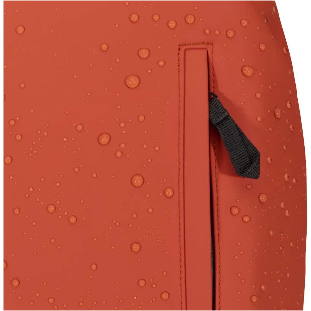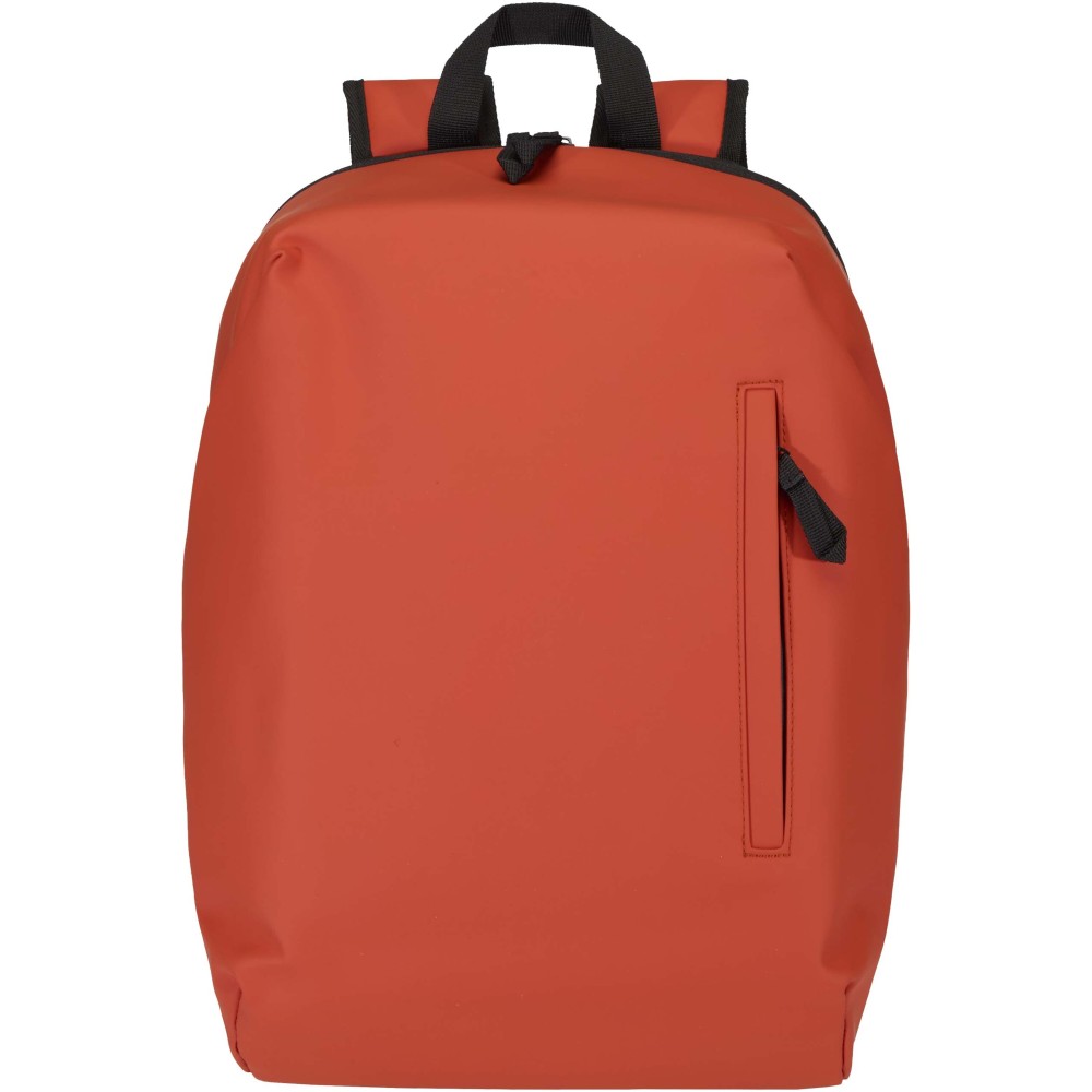 A prémium minőségű, GRS tanúsítvánnyal rendelkező újrahasznosított PU bőrből készült, színben passzoló RPET béléssel ellátott 15?-os biztonsági hátizsák garantálja az értékek védelmét és szárazon tartását útközben. A termék hátulról hozzáférhető laptoprekeszel, két letisztult oldalsó zsebbel, valamint egy vízálló cipzárral felszerelt elülső zsebbel rendelkezik. A légáteresztő hátlap biztosítja az egész napos kényelmet, így ideális választás ingázáshoz, utazáshoz vagy városi használatra. Űrtartalma: 18 liter. Emblémázás: Szitanyomás