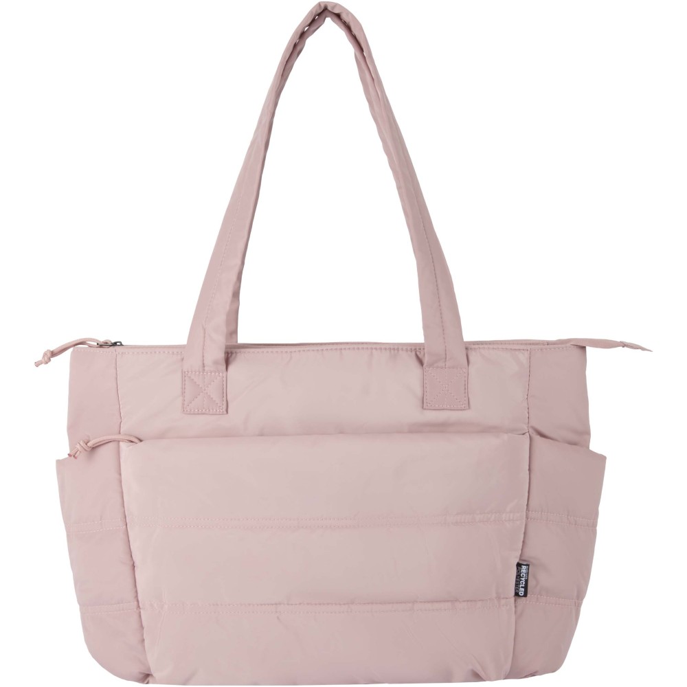 A Puffer 15,6" laptop válltáska GRS tanúsítvánnyal rendelkező újrahasznosított alapanyagokat ötvöz letisztult, modern megjelenéssel. A 18 literes űrtartalom mellett párnázott laptoprekesszel rendelkezik, amely legfeljebb 15,6 colos eszközök biztonságos tárolására alkalmas, valamint több belső és külső zsebbel, amelyekben kényelmesen elférnek jegyzetfüzetek, töltők, kulacs és egyéb mindennapi kiegészítők. A hosszú, párnázott fülek és a bőröndre rögzíthető pánt komfortos hordozást biztosítanak, míg a puffer stílusú párnázás egyszerre gondoskodik a védelemről és az elegáns megjelenésről. Könnyű és vízlepergető kialakításának köszönhetően ideális választás úton lévő szakemberek és diákok számára. Emblémázás: Szitanyomás