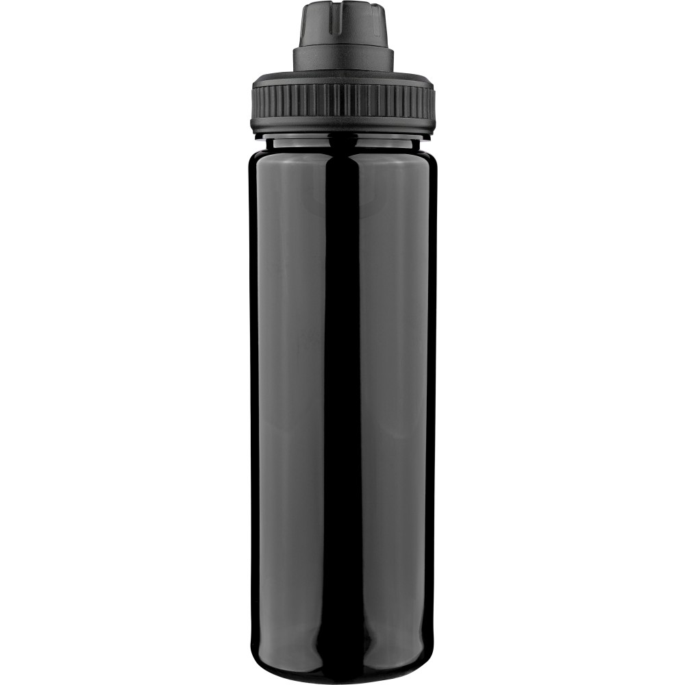 RPET anyagból készült ivópalack PP kupakkal, amely hordozófüllel és csavaros záródással rendelkezik, valamint a palack áttetsző testének színével harmonizáló szilikon díszítéssel. Űrtartalma 750 ml.