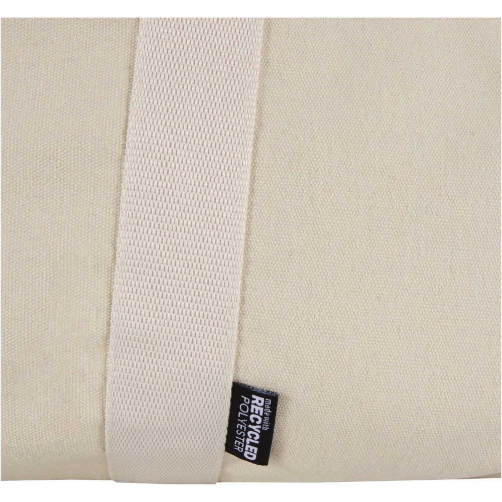 A Recanvas sporttáska GRS tanúsítvánnyal rendelkező, újrahasznosított és vízlepergető vászonból készült. A 40 literes űrtartalmú táska tágas főrekesze mellett egy cipzáras elülső zsebbel rendelkezik a gyorsan elérhető tárgyak számára, a kényelmes használatot pedig puha hordfülek, valamint a rugalmas hordozási opciókat biztosító lecsatolható és állítható vállpántok segítik. Kialakítása révén tökéletes választás edzőtermi használatra, hétvégi utazásokhoz vagy napi igénybevételre. Emblémázás: Szitanyomás